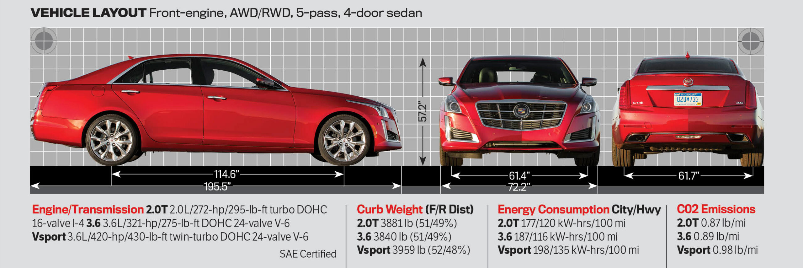 To start, the CTS rides on the new Alpha platform that took the world by storm underpinning the Cadillac ATS, with improved ride performance and handling. The author noted that the CTS chassis is hundreds of pounds lighter than the competition.